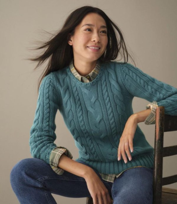 Our essential crewneck sweater in premium combed cotton and a front-to-back mix of classic cables.
