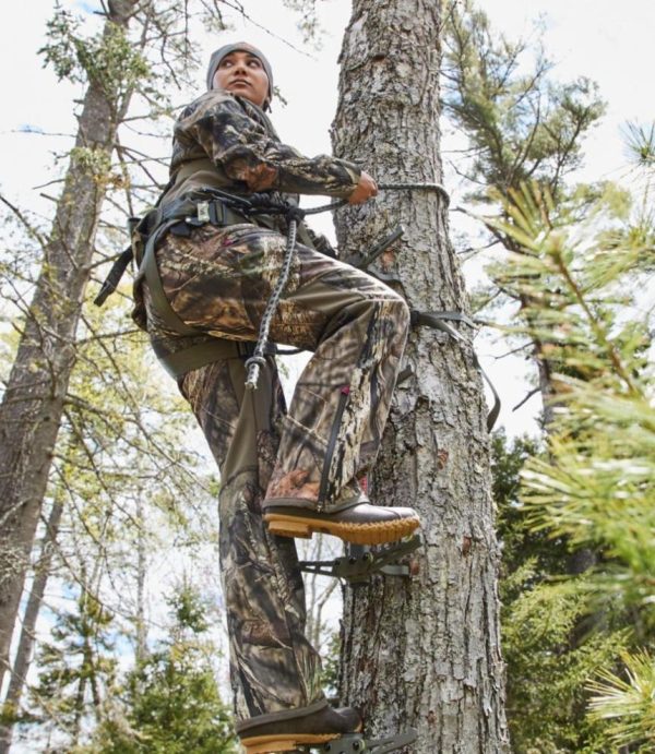 - High-back waist band for added protection while sitting on stand.